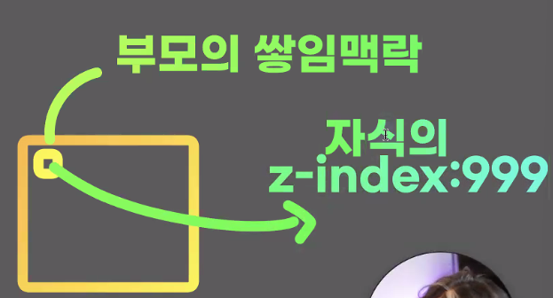ㄴ 아버지에게 z-index를 부여하여, 아들요소가 그 아래의 z-index를 들도록 한다.
