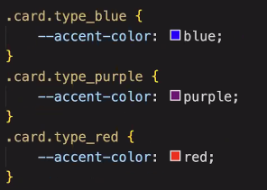 .card.type~~ 하위에 있는 자식 요소에는 모두 var(--accent-color) 를 선언하여 해당하는 색상을 관리해줄 수 있음