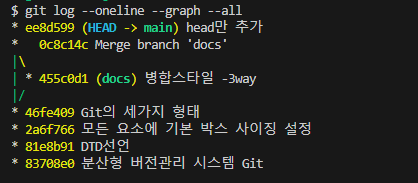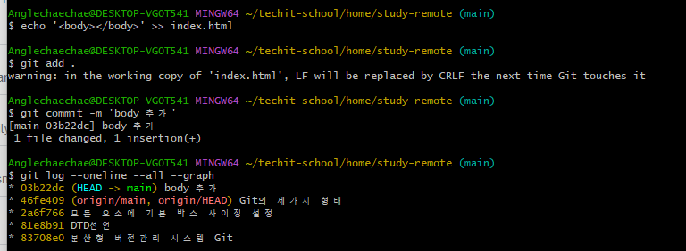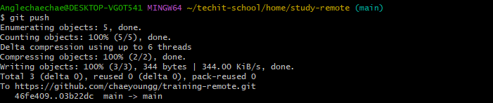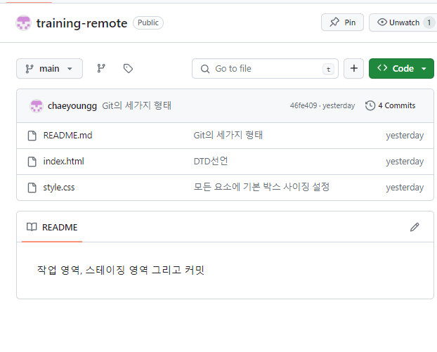 remote 저장소(깃헙)에 들어가보면 기록 확인이 가능하다.