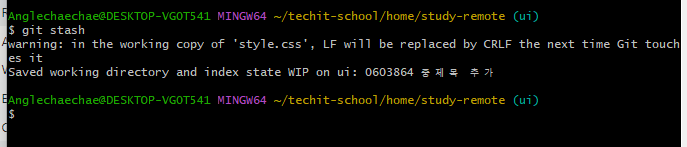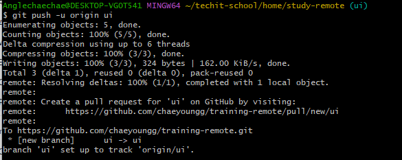 git push -u origin ui : ui 브랜치를 넣는다!