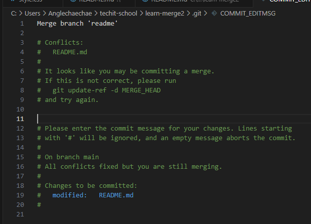 ㄴ 충돌 일어남!! => 충돌은 모두 vscode 에서 해결한다.