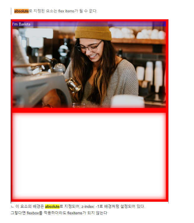 flexbox의 통제에서 벗어나려면 -> position: absolute