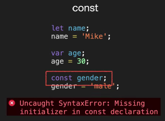 ㄴ 선언하면서 바로 할당 필요