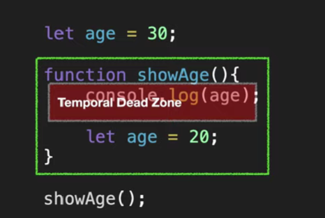 Temporal Dead Zone 때문에 TDZ의 영향을 받아 할당하지 않으면 선언되지 않음