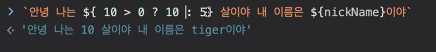문자열에 넣고 싶은 변수들을 백틱 안에 있는 ${}을 통해 표현하는 것이다.