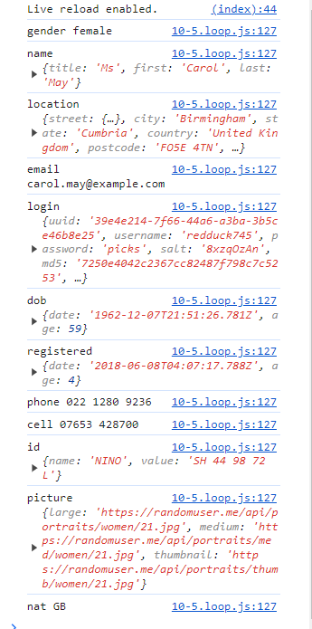 console.log(key, value);