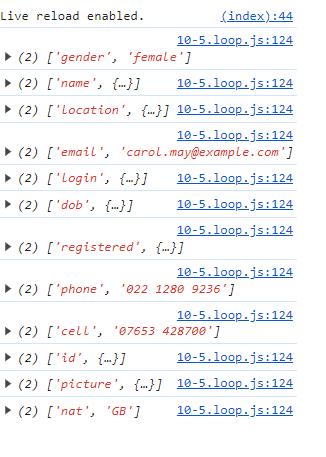 for(let keyvalue of Object.entries(randomUser)) {