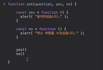 함수가 yes 안에 담기고, no 안에 담긴다.
