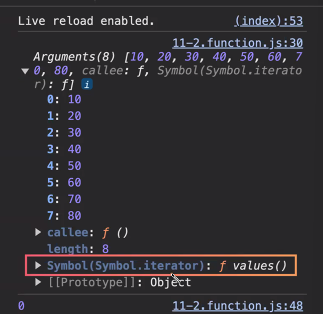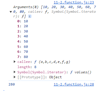 함수안에서 인수들에 접근할 때 ! arguments
