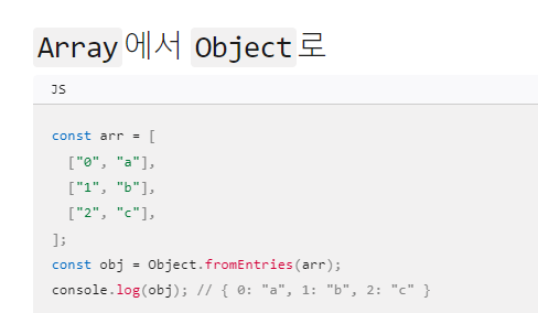 fromEntries는 배열의 key와 value 값의 쌍을 객체로 반환한다.
