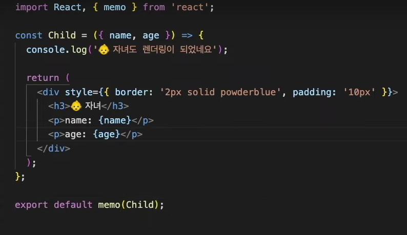 따라서,효율적으로 하기 위해서는 '자식컴포넌트' 에 memo 를 씌워주는 방법이 있다.
