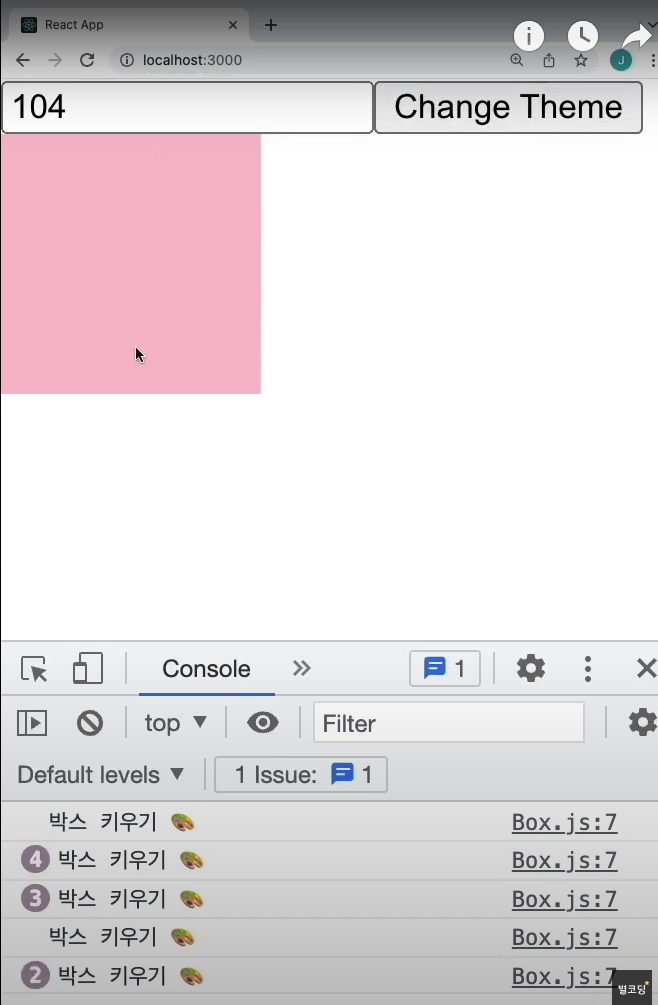 이렇게 만약 배경 색상을 변경하는 버튼이 하나 추가되었어도, 박스키우기는 계속해서 렌더링 된다.