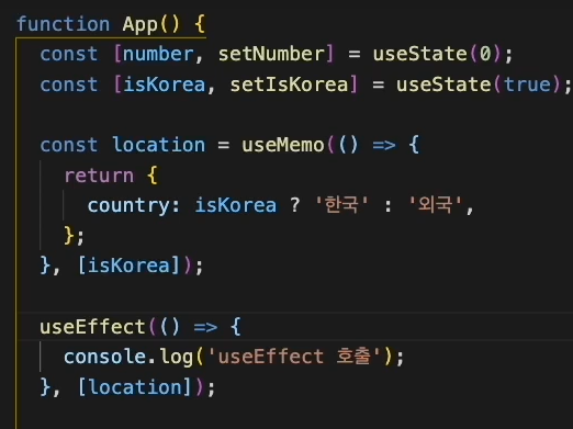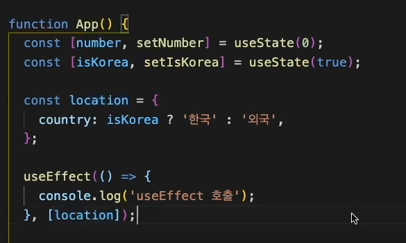 '객체' 는 값이 들어있는 것이 아니라, '주소를 참조' 하는 것이기 때문에, 매 렌더링마다 생성되는 location의 값(주소)이 달라진다고 볼 수 있다.
