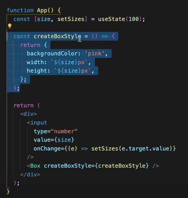 따라서, createBoxStyle이 렌더링되면서 계속해서 새로 생성되기 때문이다.