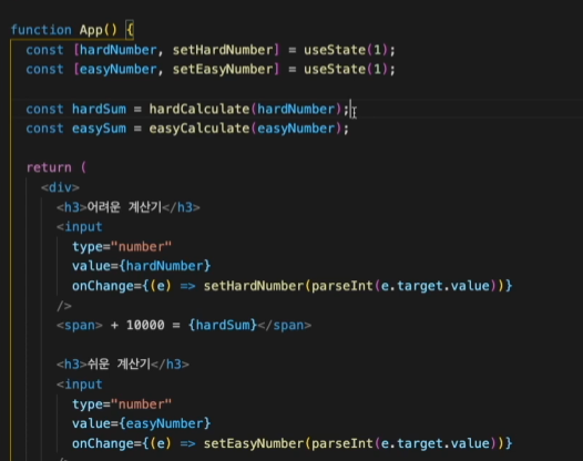 ㄴ> 이를 막기 위해 hardCaclculator에 useMemo를 씌워준다.