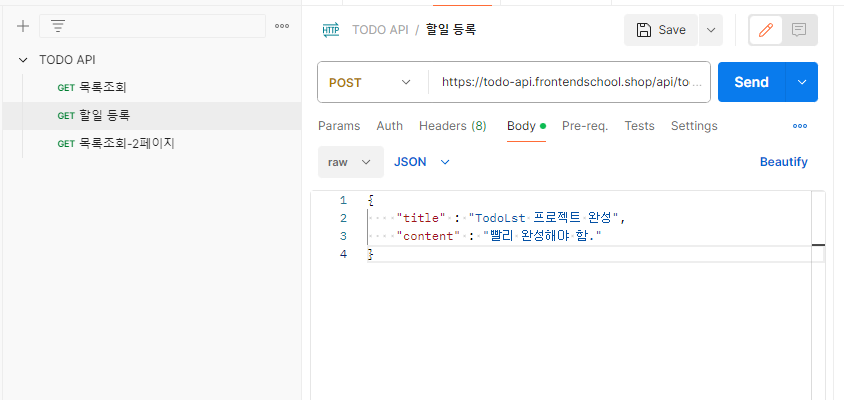 API 사이트 : https://todo-api.frontendschool.shop/apidocs/