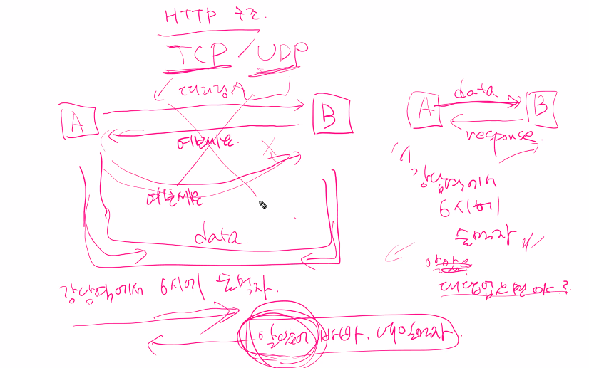 - HTTP로 연결하면, 연결이 끊어 진 이후 서버는 기대리기만 하고 찾아갈 수가 없다. polling방식 : 클라이언트가 항상 요청